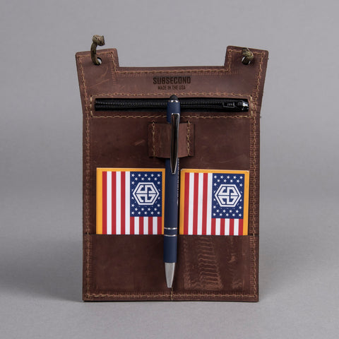 Our Leather Event Badge is built for professionals that mean business. Because your ID deserves better than a lanyard and laminate. Made from premium oil-tan leather, it features a zippered pocket for secure credential storage, a dedicated pin holder, and dual business-card slips—designed to keep your essentials organized and ready for any event or operation.